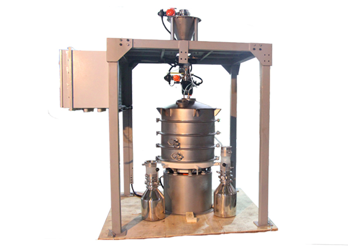 3D打印材料氣體超聲波振動篩配有氣體保護裝置,與材料接觸部分采用304材質(zhì),采用立式振動電機作為激振源。垂直和傾斜的三維運動,然后將此運動傳遞到篩面上,大于篩孔尺寸的物料留在篩面上并從粗料排料口排出,小于篩孔尺寸的物料 落入下層。,根據(jù)振動篩的設(shè)計,可以配置1-5層篩網(wǎng)來實現(xiàn)粒度分級。