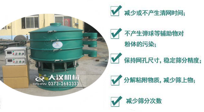 改善低密度粉在重力沉降中的平降(粉末與網(wǎng)口輕接觸)滑移效應(yīng),改善高密度金屬在網(wǎng)口滯留或楔入,改善帶靜電粉體的粘附效應(yīng),從而提高篩分效率和篩分質(zhì)量。用篩分通過(guò)率表示,一般情況下比普通旋振篩增加通過(guò)率50%-400%。