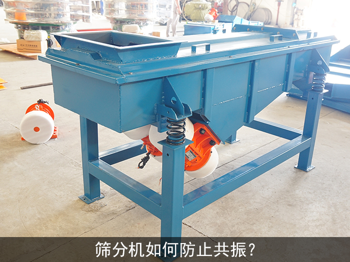 篩分機(jī)的振動電動需要安裝在很重的底盤上,可使篩機(jī)本身固有頻率增加,以增大與振動電機(jī)的振動頻率差距防止產(chǎn)生共振。