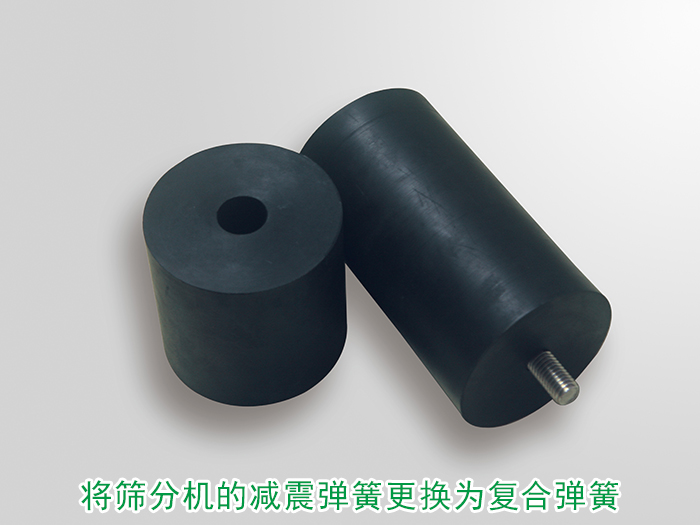 可將篩分機(jī)的減震彈簧更換為符合彈簧,復(fù)合彈簧具有高強(qiáng)度的阻尼,可有效限制共振區(qū)區(qū)域減緩共振時間降低整個篩分設(shè)備振動頻率的功效。