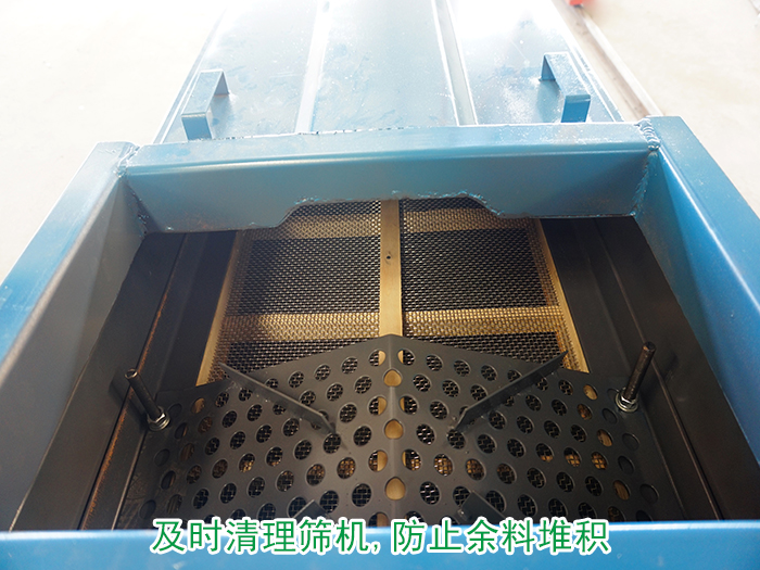 在篩分機(jī)使用過程中需要勻速進(jìn)料不能使設(shè)備過載篩分,篩機(jī)內(nèi)部也需要時常清理,防止余料堆積,如果過載篩分也會影響篩機(jī)的振動頻率,導(dǎo)致共振的發(fā)生。